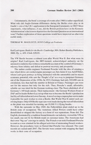 The VW Beetle became a cultural icon after World War II. But what were its origins? Karl Ludvigsen, the MIT-trained, acknowledged authority on the automotive industry has written a remarkable account of the symbol of Germany's odyssey from infamy and defeat to postwar recovery and prosperity.